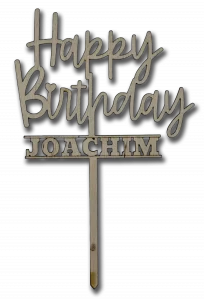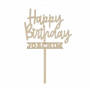 Dieser hochwertige Holz-Topper ist eine besondere und persönliche Dekoration, die jedem Geburtstag eine individuelle Note verleiht. Gefertigt aus stabilem 3 mm Holz, zeigt er den Schriftzug „Happy Birthday“ gemeinsam mit Ihrem gewünschten Namen in einer harmonischen, rund ausgeschnittenen Form. Der präzise Laserschnitt lässt die Buchstaben filigran wirken und sorgt dennoch für Stabilität und Langlebigkeit.